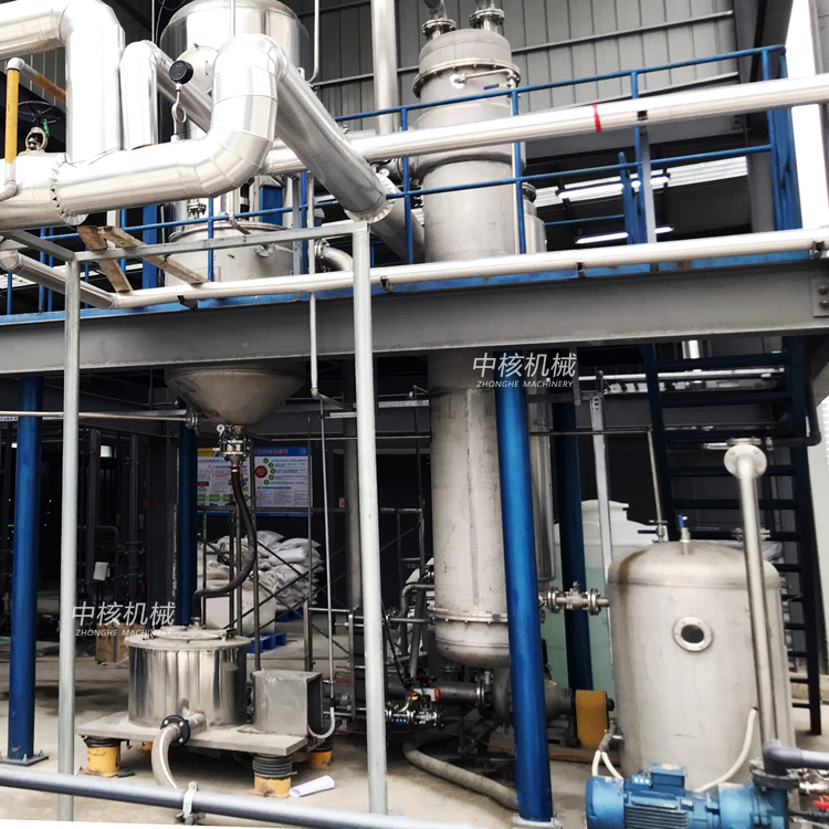 3.整套工藝為真空條件下蒸發(fā),溫度相對較低,蒸發(fā)速度快,蒸發(fā)耗能低,蒸發(fā)濃度高,使粘度較大的料液容易流動(dòng)蒸發(fā),不易結(jié)垢。